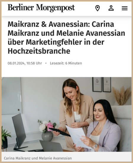 Erhalte einen noch nie preisgegebenen Einblick in die Denkweisen und die Erfolgsgeheimnisse von Carina und Melanie im Hochzeitsbusiness.