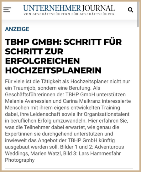 Erhalte kostenlose Einblicke in unsere Events, entdecke spannende Interviews und erhalte Tipps rund um das Hochzeitsbusiness.